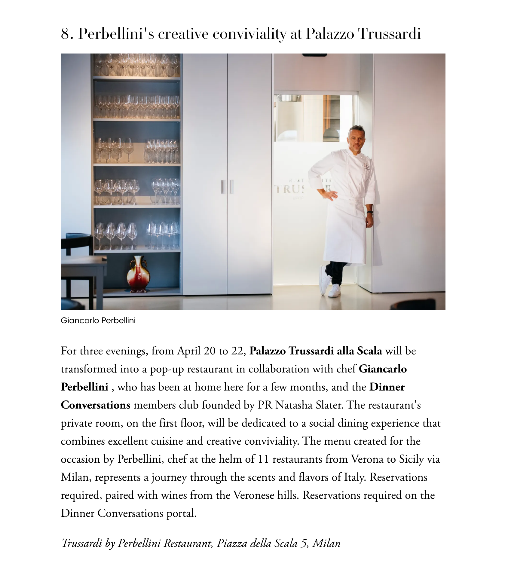 La convivialità creativa di Perbellini a Palazzo Trussardi